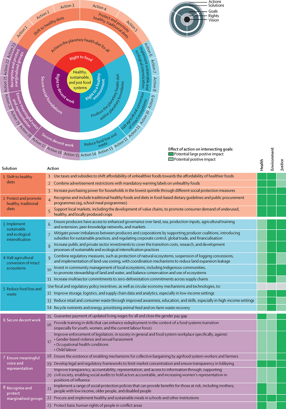 Goals, solutions, and actions to achieve healthy, sustainable, and just food systems (Rockström et al., 2025, Fig. 16)