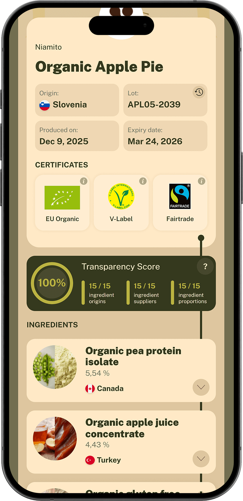 Our journey started in 2022 with crop-level traceability reports in PDF format. In 2023, we advanced transparency by sharing detailed information about our crops, farming operations, and product specifications directly on our website.